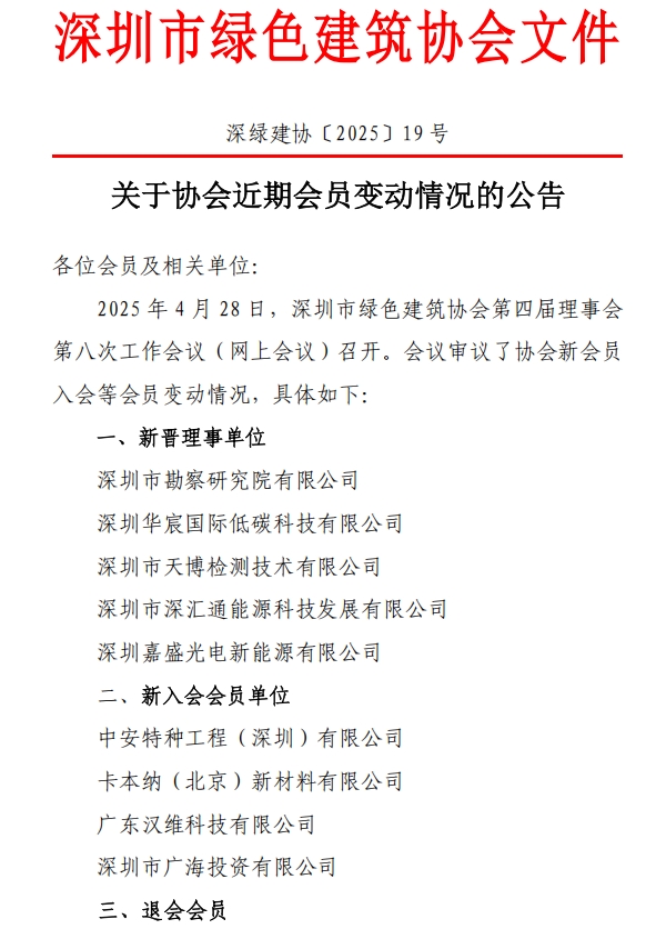 關(guān)于協(xié)會(huì)近期會(huì)員變動(dòng)情況的公告