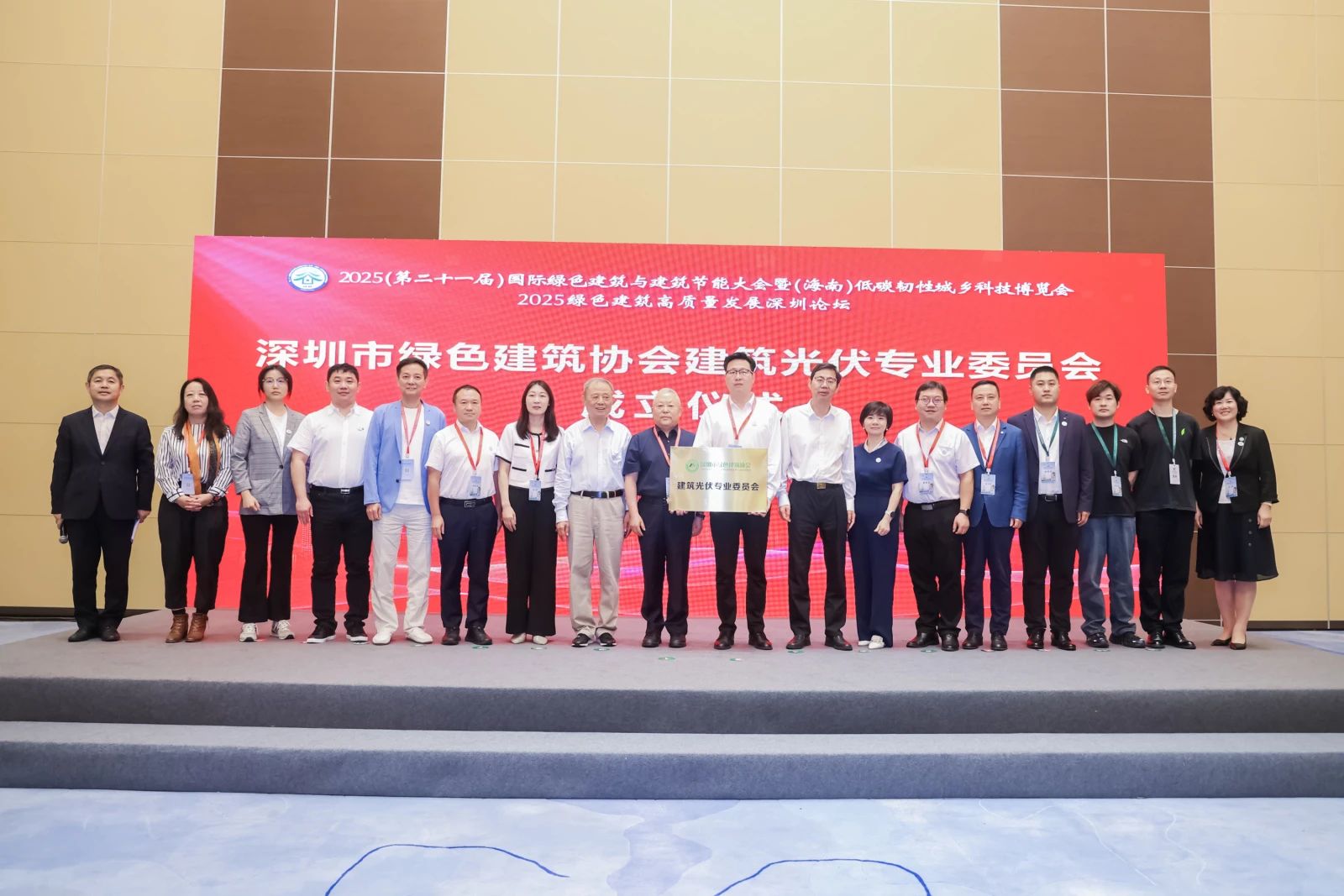 大會期間,協(xié)會聯(lián)合有關(guān)單位舉辦兩個(gè)專題論壇,助推深圳以及粵港澳大灣區(qū)綠色建筑高質(zhì)量發(fā)展。5月17日上午,舉辦“推動能源轉(zhuǎn)型,賦能綠建未來——2025綠色建筑高質(zhì)量發(fā)展深圳論壇”。論壇由中國城市科學(xué)研究會綠色建筑與節(jié)能專業(yè)委員會指導(dǎo),深圳市綠色建筑協(xié)會主辦,深圳凱盛科技工程有限公司聯(lián)合主辦,深圳市綠色建筑協(xié)會建筑光伏專業(yè)委員會、深圳市華寶新能源股份有限公司協(xié)辦,并得到了粵港澳大灣區(qū)“9+2”城市綠色建筑與建筑節(jié)能領(lǐng)域行業(yè)機(jī)構(gòu)的大力支持。 論壇期間,舉行“深圳市綠色建筑協(xié)會建筑光伏專業(yè)委員會成立儀式”。在現(xiàn)場嘉賓和專委會委員代表的見證下,深圳市綠色建筑協(xié)會會長剪愛森向協(xié)會建筑光伏專業(yè)委員會主任甘勝保授牌。