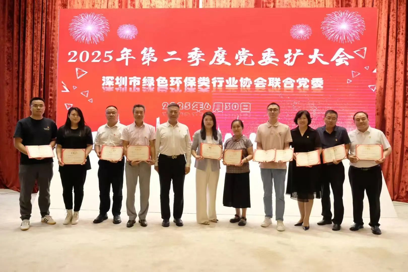 按照上級(jí)黨委工作要求和聯(lián)合黨委年度工作安排,6月30日,深圳市綠色環(huán)保類(lèi)行業(yè)協(xié)會(huì)聯(lián)合黨委在中信大廈23樓會(huì)議室召開(kāi)第二季度黨委(擴(kuò)大)會(huì)暨深入貫徹中央八項(xiàng)規(guī)定精神學(xué)習(xí)推進(jìn)會(huì),聚焦黨建引領(lǐng)、組織換屆與作風(fēng)建設(shè),系統(tǒng)總結(jié)上半年工作,部署下半年工作任務(wù)。會(huì)議由黨委書(shū)記張光勛主持,第一書(shū)記葛曉光、黨委書(shū)記、副書(shū)記、委員及紀(jì)委書(shū)記、紀(jì)委委員、各黨支部書(shū)記等20余人參會(huì)。在會(huì)上舉行的“七一”表彰活動(dòng)中,深圳市綠色建筑協(xié)會(huì)黨支部獲多項(xiàng)榮譽(yù)表彰——協(xié)會(huì)黨支部榮獲“先進(jìn)黨支部”稱(chēng)號(hào),協(xié)會(huì)黨支部書(shū)記王向昱同志榮獲“優(yōu)秀黨務(wù)工作者”稱(chēng)號(hào),張昭雄同志榮獲“優(yōu)秀共產(chǎn)黨員”稱(chēng)號(hào)。