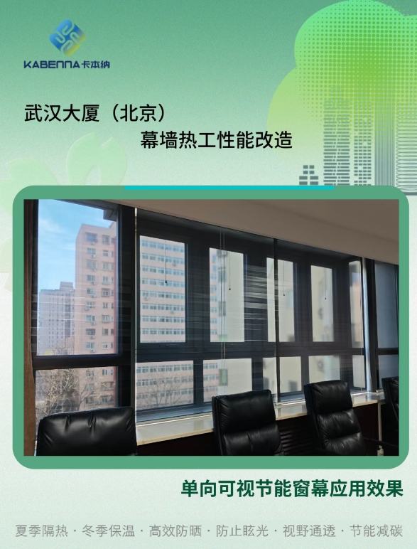 卡本納深耕建筑幕墻與窗節(jié)能改造領(lǐng)域,推出的單向可視節(jié)能窗幕,直擊幕墻與窗熱工性能衰退與不可調(diào)兩大核心痛點。窗幕通過先進納米膜材與控制組件實現(xiàn)幕墻熱工參數(shù)動態(tài)調(diào)節(jié),夏季減少40-50%室內(nèi)得熱、冬季減少20-30%室內(nèi)熱量流失,以主動調(diào)節(jié)機制逆轉(zhuǎn)性能衰減趨勢,從根本上破解建筑能耗攀升、熱舒適性差等頑疾。作為2021年獲國家發(fā)明專利的革命性成果,其創(chuàng)新價值獲多項權(quán)威認證背書:通過住建部建設(shè)行業(yè)科技成果評估、斬獲北京市五部委聯(lián)合頒發(fā)的新技術(shù)新產(chǎn)品證書、入選北京市發(fā)改委綠色低碳先進技術(shù)推薦目錄。目前窗幕已應(yīng)用于全國200余個幕墻改造項目,被業(yè)內(nèi)專家、設(shè)計師和業(yè)主廣泛認可,既以技術(shù)突破印證創(chuàng)新實力,更憑市場滲透力彰顯強勁發(fā)展?jié)摿Γ掷m(xù)贏得客戶高度贊譽。