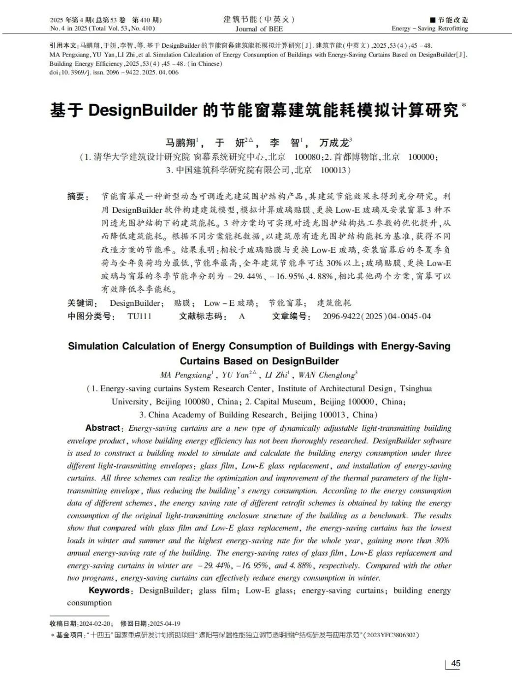 近日,由卡本納(北京)新材料有限公司、首都博物館與中國建筑科學(xué)研究院聯(lián)合開展的節(jié)能窗幕研究成果——《基于DesignBuilder的節(jié)能窗幕建筑能耗模擬計(jì)算研究》,正式發(fā)表于中國科技核心期刊《建筑節(jié)能(中英文)》。該成果獲得了“ 十四五” 國家重點(diǎn)研發(fā)計(jì)劃“遮陽與保溫性能獨(dú)立調(diào)節(jié)透明圍護(hù)結(jié)構(gòu)研發(fā)與應(yīng)用示范”的專項(xiàng)支持,為建筑節(jié)能領(lǐng)域提供了創(chuàng)新性解決方案。