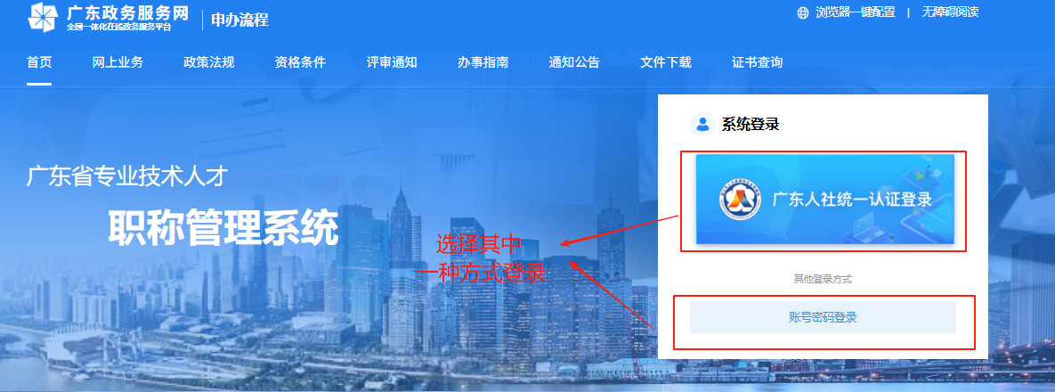 請(qǐng)使用IE8.0及以上瀏覽器訪問(wèn)系統(tǒng)登錄“廣東省專業(yè)技術(shù)人才職稱管理系統(tǒng)”網(wǎng)址https://ggfw.hrss.gd.gov.cn/gdweb/ggfw/web/pub/ggfwzyjs.do(或通過(guò)登錄深圳市人才一體化平臺(tái)跳轉(zhuǎn)到此網(wǎng)站)。