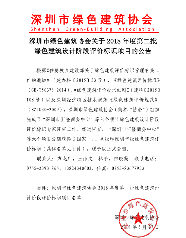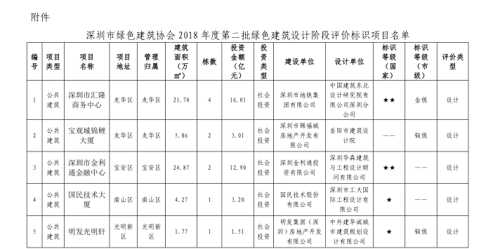 關(guān)于2018年度第二批綠色建筑設(shè)計階段評價標識項目的公告