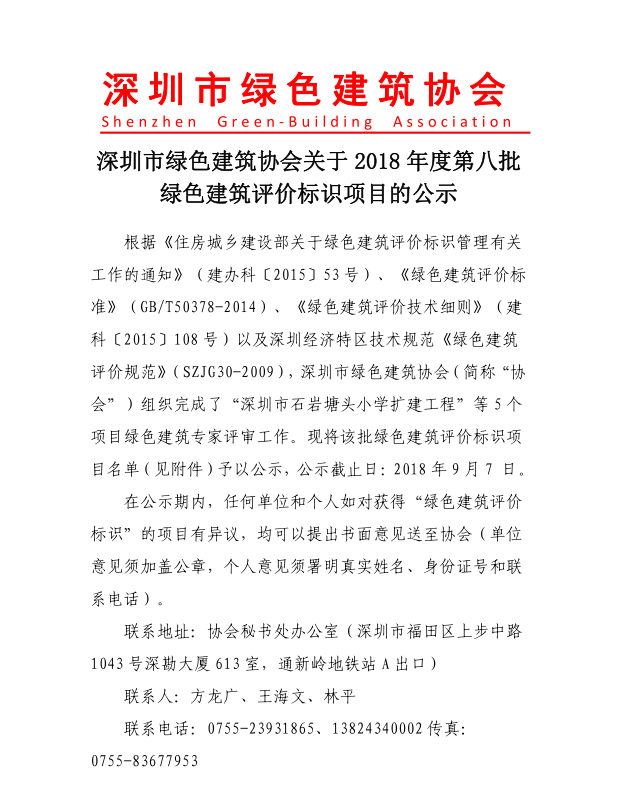 關(guān)于2018年度第八批綠色建筑評價(jià)標(biāo)識(shí)項(xiàng)目的公示
