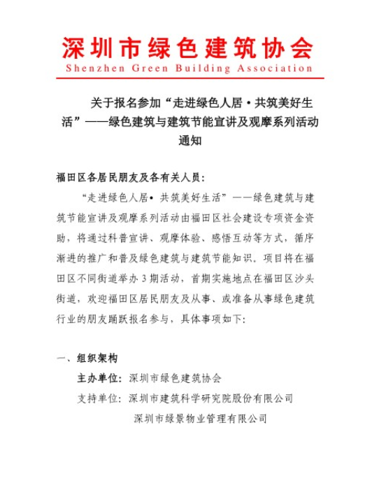 關(guān)于報名參加“走進綠色人居·共筑美好生活”——綠色建筑與建筑節(jié)能宣講及觀摩系列活動通知