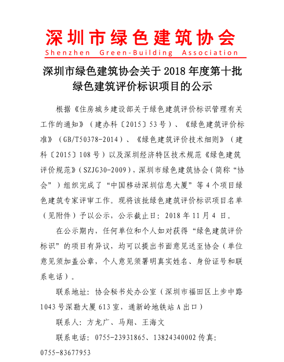 關(guān)于2018年度第十批綠色建筑評(píng)價(jià)標(biāo)識(shí)項(xiàng)目的公示