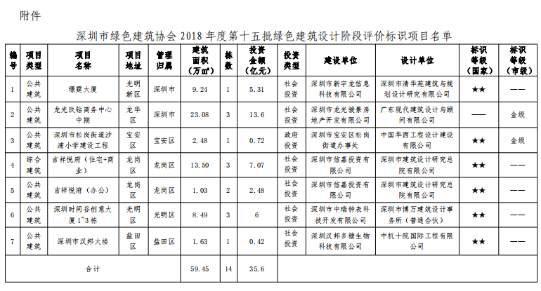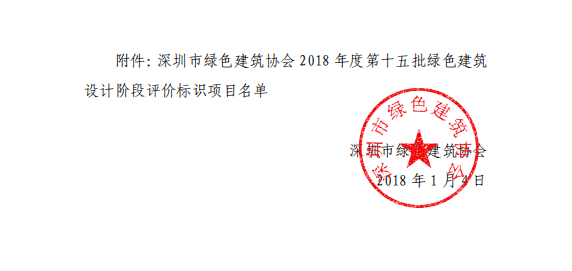 深圳市綠色建筑協(xié)會關(guān)于2018年度第十五批綠色建筑評價標識項目的公示