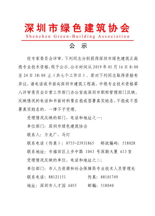 2018年度深圳市建筑專業(yè)高、中級(jí)專業(yè)技術(shù)資格第八評(píng)審委員會(huì)評(píng)審?fù)ㄟ^(guò)人員公示