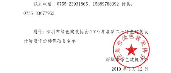 深圳市綠色建筑協(xié)會(huì)關(guān)于2019年度第二批綠色建筑評(píng)價(jià)標(biāo)識(shí)項(xiàng)目的公示