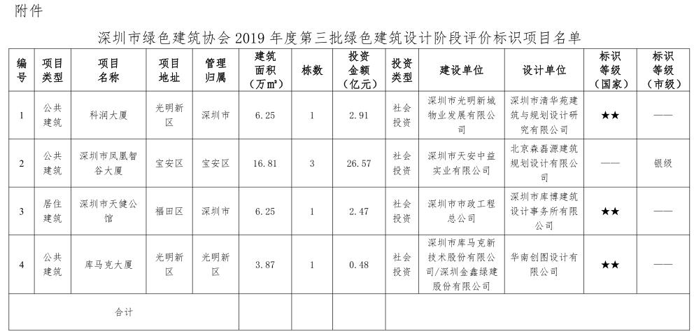 深圳市綠色建筑協(xié)會(huì)關(guān)于2019年度第三批綠色建筑評(píng)價(jià)標(biāo)識(shí)項(xiàng)目的公告
