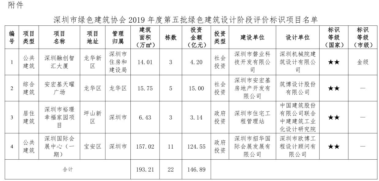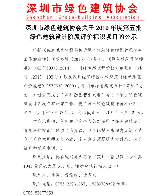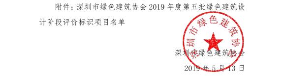 深圳市綠色建筑協(xié)會關(guān)于2019年度第五批綠色建筑評價標(biāo)識項目的公示