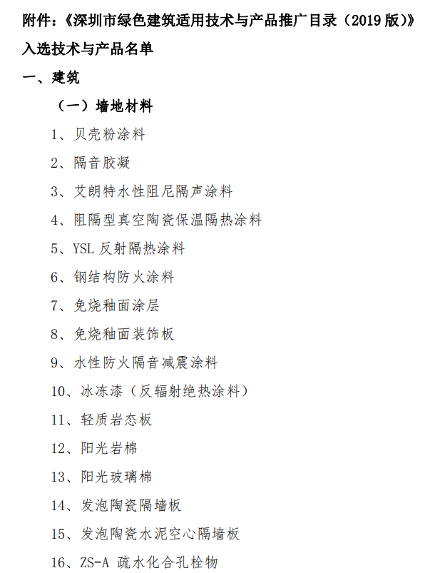 《深圳市綠色建筑適用技術(shù)與產(chǎn)品推廣目錄(2019版)》入選技術(shù)與產(chǎn)品名單公告